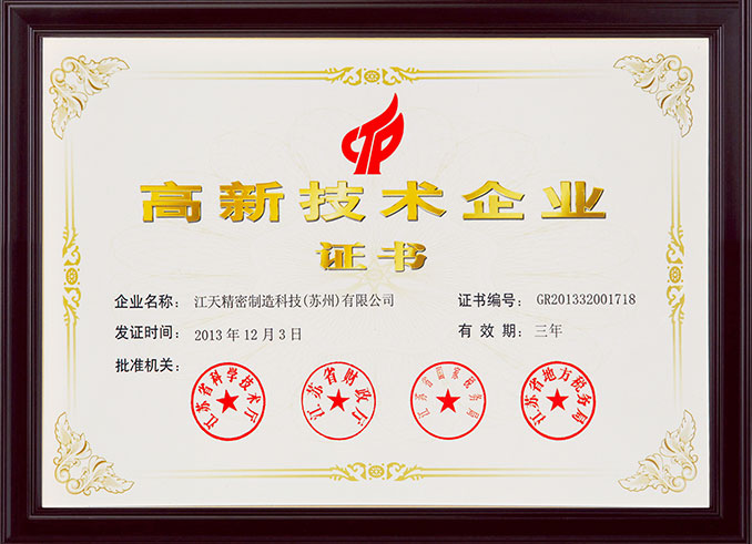 国家高新技术企业-江天精密